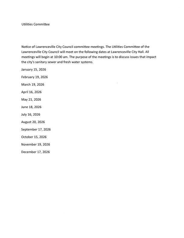 City of Lawrenceville Committee Meetings Schedule